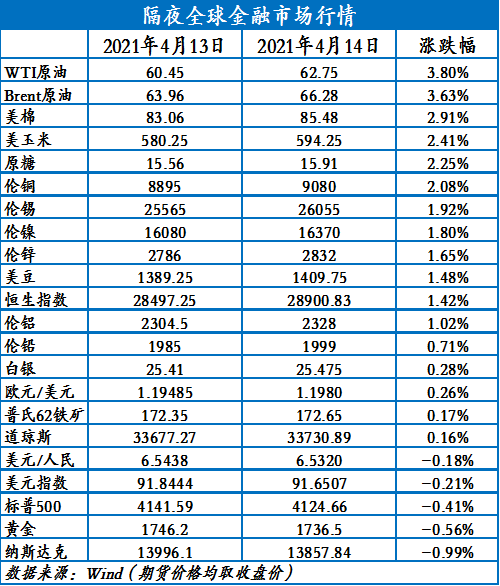 IEA月报:调高石油需求预期,将2021年石油需求增长预测上调23万桶/天至570万桶/天。